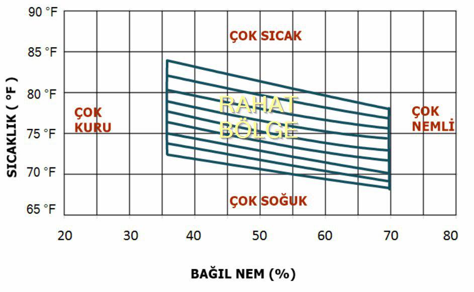 Her insanın farklı konfor istekleri olmasına rağmen, çoğu insanın ortalama olarak rahat hissettiği nem ve sıcaklık kombinasyonları bulunmaktadır.